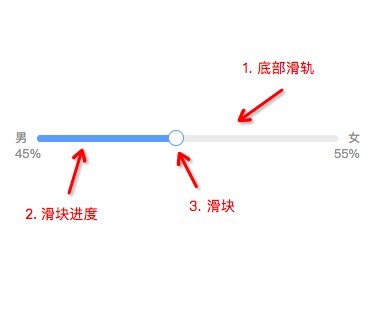 在结构设计中,可以将底部滑轨区域,进度条区域分为一块,这样进度条区域可以根据随着滑动条的高度变化而变化, 宽度则由js控制。除此之外还需要暴露一些参数给外部,让它自己定义长粗宽。
